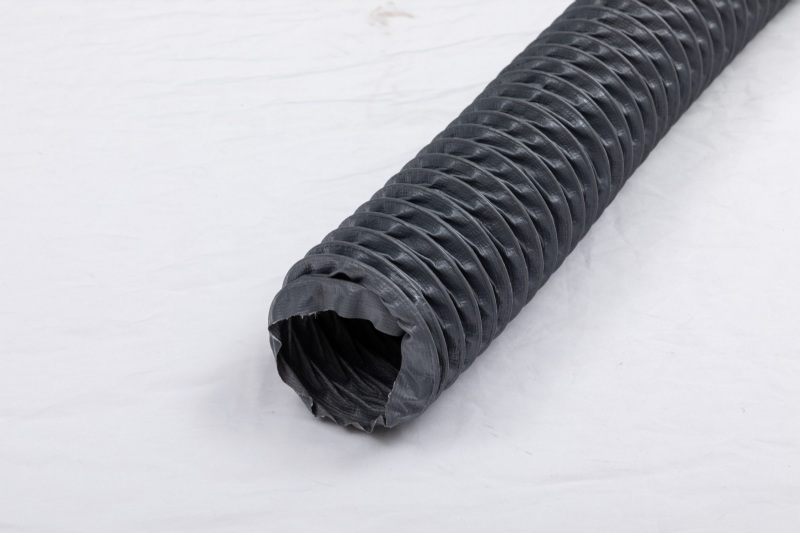 Covered with nylon mesh cloth, the inner is supported by steel wire, the upper and lower layers are bonded by high temperature heat fusion, and the spiral is formed to extend. The maximum withstand voltage is 1000pa, and the standard length is 10m. High flexibility and flexibility, easy construction. It is used for various mechanical ventilation, chemical, exhaust gas, etc. It has high temperature resistance, acid and alkali resistance, strong flame retardancy, and self- extinguishing from fire.