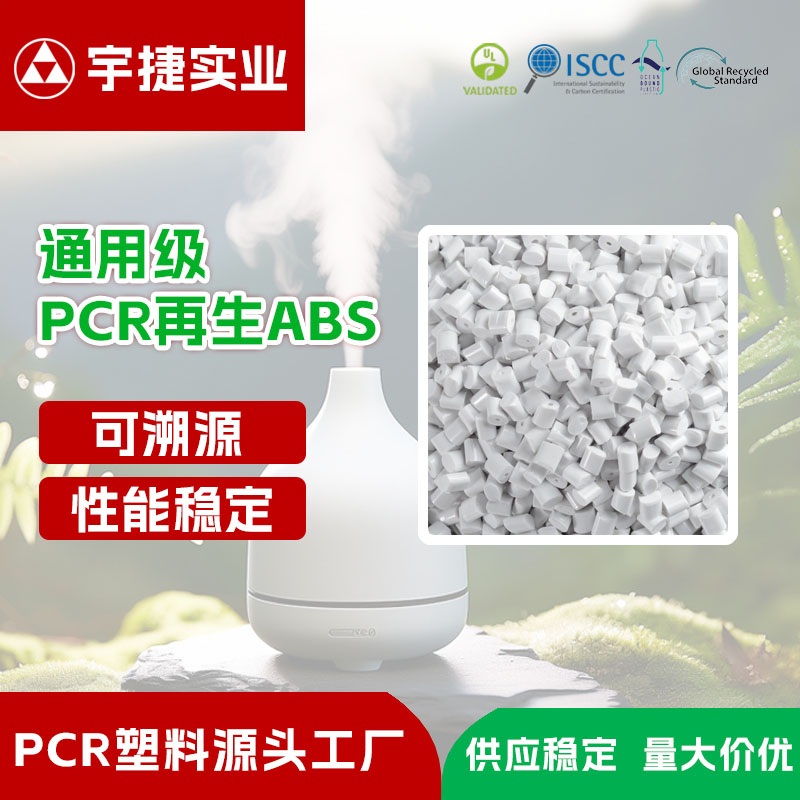 An eco-regenerated material based on post-consumer recycled acrylonitrile-butadiene-styrene (ABS), primarily sourced from plastic waste such as discarded electronics and appliance housings. Through processes including sorting, washing, and remelting, it achieves efficient recycling of waste plastics with 30%-95% recycled ABS content.
