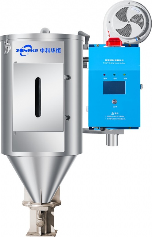 The down - blowing dryer is made of double - layer stainless steel and adopts "hot air down - blowing" and "cyclone air exhausting". It is mainly applied to plastic material drying. Hot air is used to dry all wet materials which gain an even hot air flow to improve drying efficiency for assuring quality of products. Hopper capacities rang from 6 - 2000kgs can be offered for selection. Exhaust air filter (option) can filter the dust - contain air effectively from discharging to the surrounding area. Hot air recyclers (option) to make hot air form a semi - closed circulated loop to speed up hot air circulation for shorten heating time to achieve energy saving up to 30%.