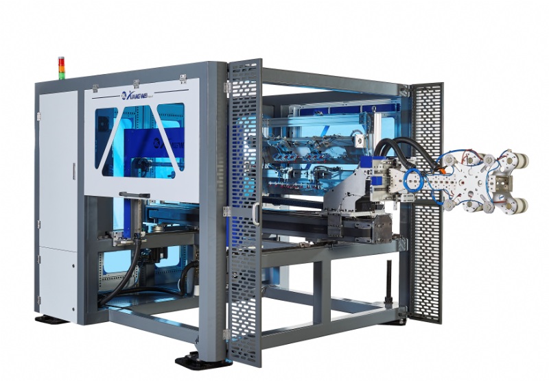 The side-entry in-mold labeling (IML) machine is an automated device used to precisely insert labels into molds during the injection molding process. It is widely applied in the production of plastic containers (such as food packaging, cosmetic caps, medical supplies, etc.). Its core function is to integrate labels directly into the product during molding, replacing traditional post-molding labeling processes. Below are its main functions and features: I. Core Functions 1.Automated Labeling Uses robotic arms or conveyor systems to accurately feed labels into the mold from the side. The molten plastic bonds with the label during injection, creating a seamless product surface. 2. High-Precision Positioning - Utilizes vision systems or sensors to detect label position, ensuring alignment accuracy (typically within ±0.1mm) and preventing misplacement or wrinkles. 3. Multi-Label Compatibility - Handles various label materials (PP, PE, PET,paper, etc.)