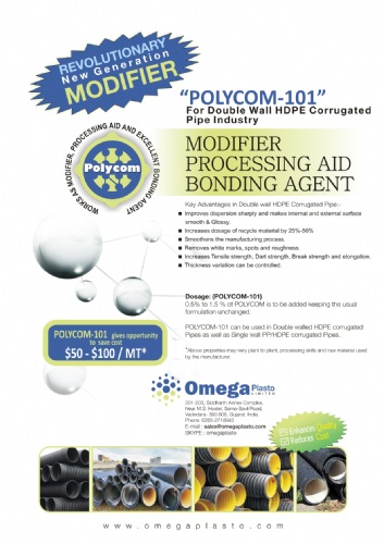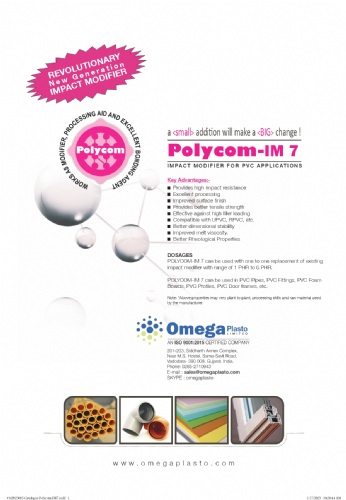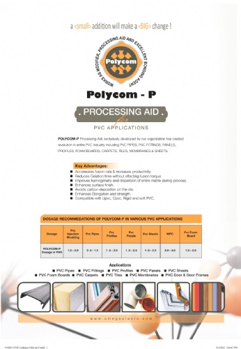 POLYCOM-P: It is a processing Aid which replaces Acrylic Processing Aid at dosage of 70%, Reduces Gelation time without reducing fusion torque, improves homogeneity & dispersion, Reduces the cost of production.