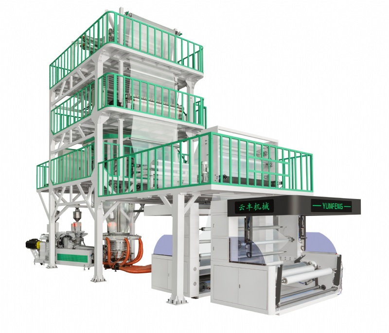 This machine adopts three extruders to plasticize and squeeze three kinds of same or different materials into the co-extrusion compound head to produce the co-extrusion compound film, which greatly improves the physical properties of the film, increases its strength, and makes the film have good barrier and air tightness.
