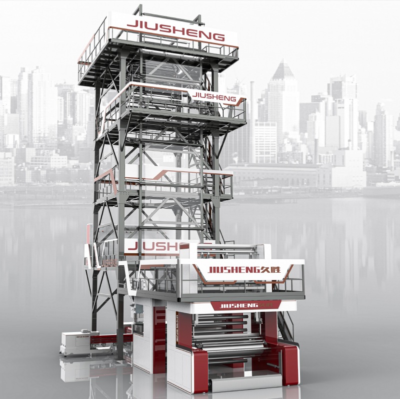 A three-layer extruder film blown machine with automatic thickness control is an advanced plastic film manufacturing system used to produce multi-layered blown films with precise thickness uniformity. This type of machine is commonly used in packaging industries for applications requiring enhanced barrier properties, strength, and flexibility. Key Features: 1.Three-Layer Extrusion System 2.Automatic Thickness Control 3.Co-extrusion Blown Film Die 4.Bubble Stabilization & Cooling 5.Take-off & Winding Advantages: 1.Improved Film Quality 2.Material Savings 3.Versatility
