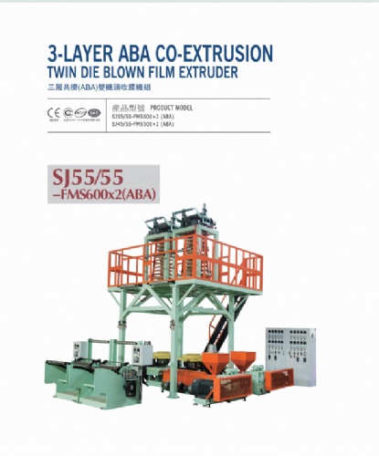 3-LAYER ABA CO-EXTRUSION TWIN DIE BLOWN FILM EXTRUDER