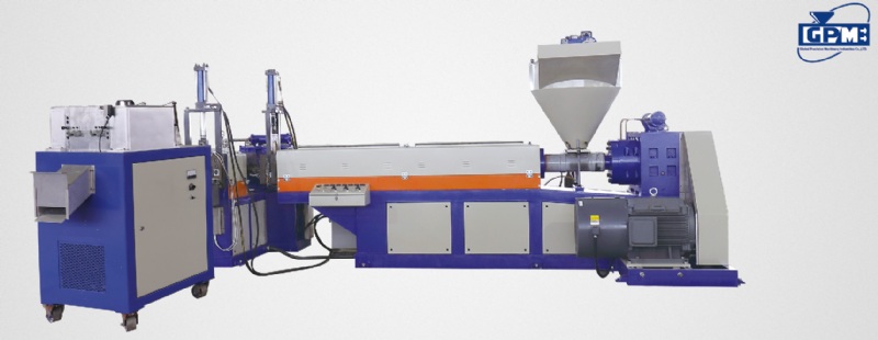 Due to uneven sizes of recycled crushed materials, impurities or moisture are excessive. The upper single-screw main machine effectively completes large-capacity propulsion, rapid melting, drainage, plasticization and gas discharge of the material, and it simultaneously performs primary filtration of impurities. The lower single-screw device of the machine is used to complete cooling of the materials, stabilizing machine head pressure, re-filtration and extrusion. The machine makes refreshed, clean materials and shows good plasticizing results, thereby it greatly enhances productivity and reduces labor intensity.