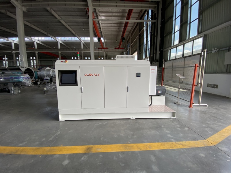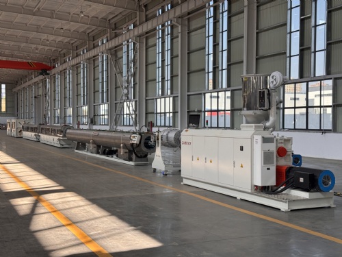 The PVC twin-pipe production line manufactured by Anhui Dongcai Machinery Technology Co., Ltd. is equipped with energy-saving conical twin screw extruder or parallel twin screw extruder. To guarantee theadvanced mixing and plasticizing effect, our twin screw extruder adopts reasonable screw design with low shear rate to avoid the sensitive PVC material being decomposed easily.